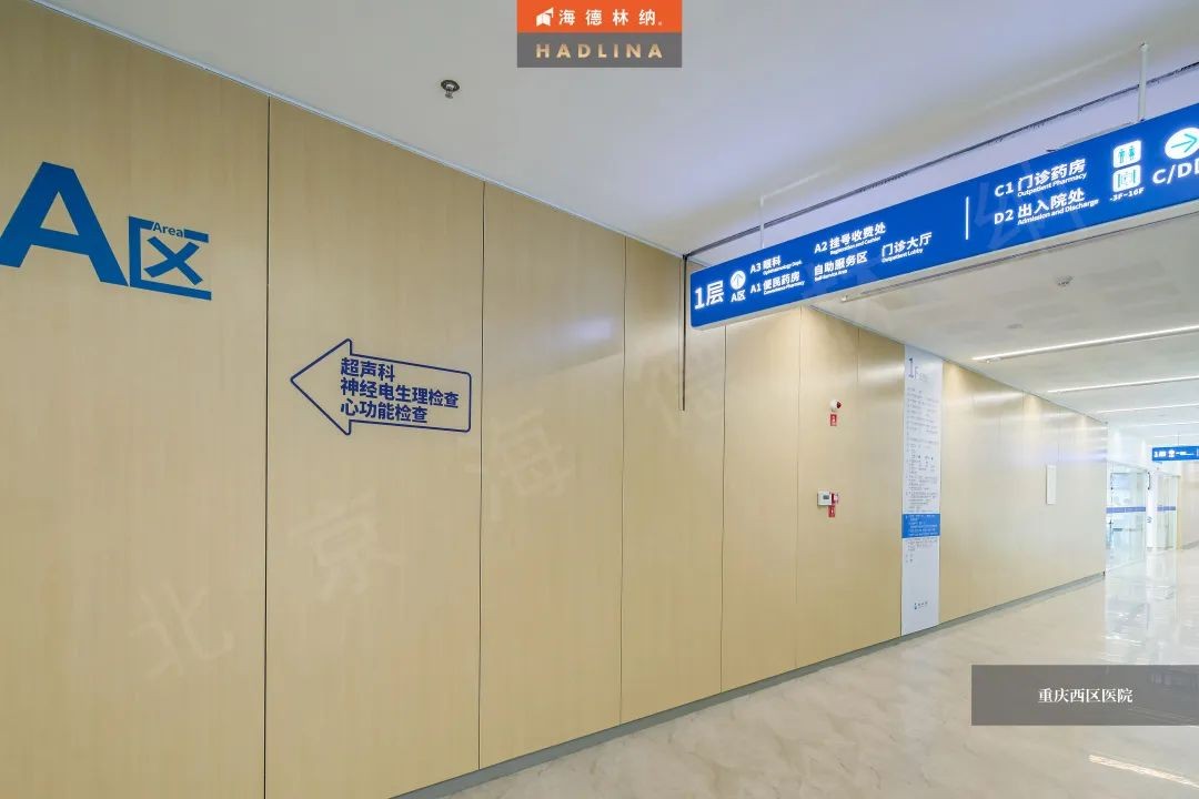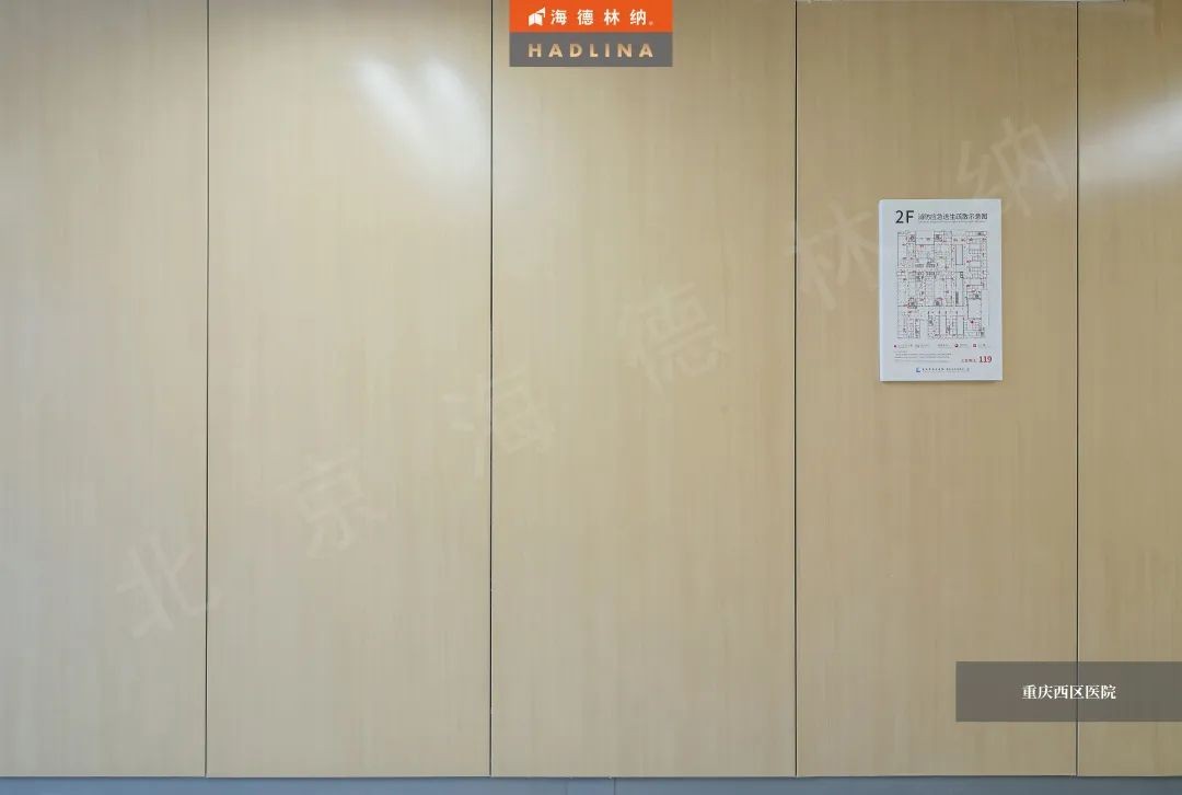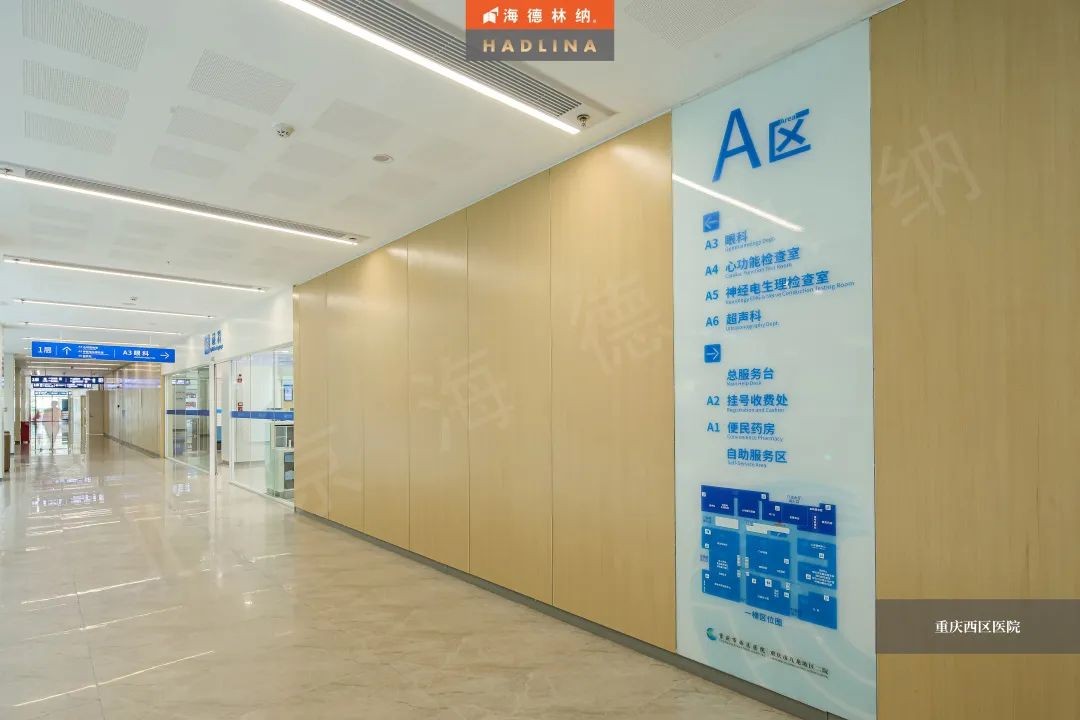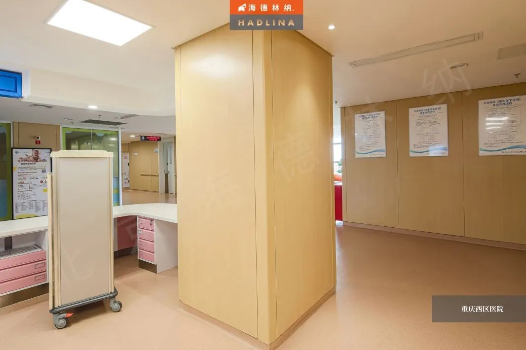 重庆西区医院采用海德林纳®木纹花色,打破了医院刻板冰冷的印象,给空间注入一份自然温馨的氛围,为患者带来更好的就医体验。